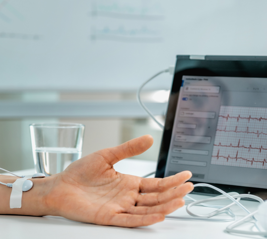 Au cabinet, j’utilise principalement deux types de biofeedback : la cohérence cardiaque et la conductance cutanée.